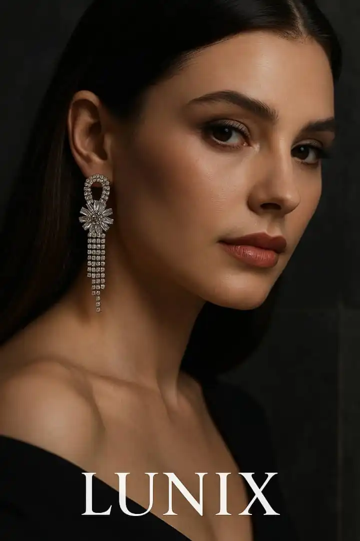💫 مزایای خرید گوشواره مجلسی فول نگین از برند LUNIX