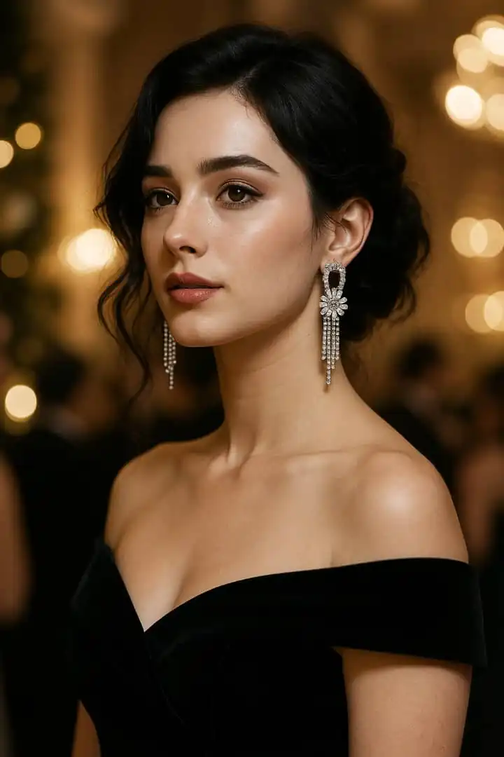 در کنار آرایش ملایم و موی بسته، گوشواره نگیندار تمام توجهها را به سمت چهرهتان میکشاند — مخصوصاً در عکسها و نور شب.