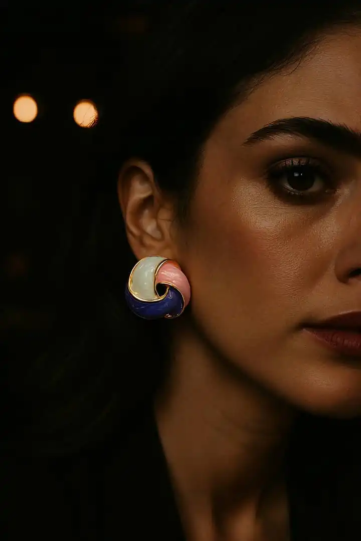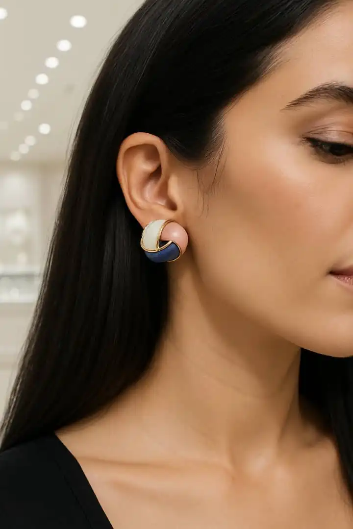 💍 ۵. ست کردن گوشواره میناکاری رنگی استیل با استایل شخصی